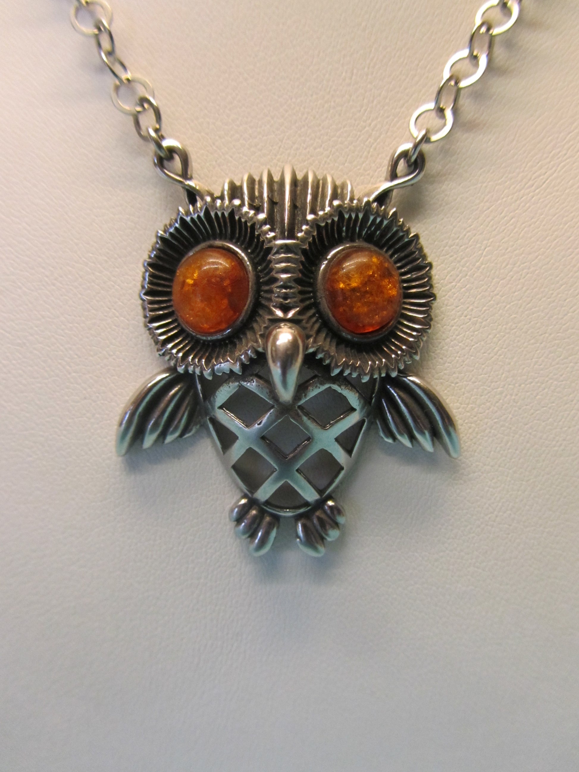 Anhänger Silber Eule mit Bernstein Augen